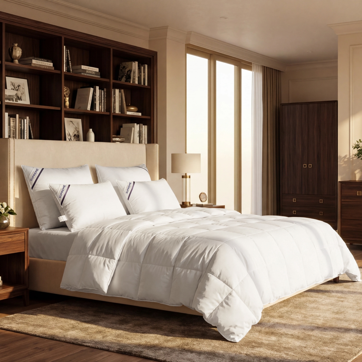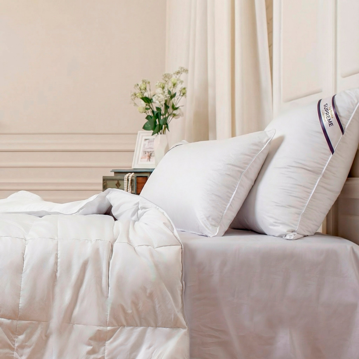 Почувствуйте настоящее сибирское тепло, созданное для вашего идеального отдыха. Supreme Collection — это премиальные пуховые одеяла из натурального белого гусиного пуха высочайшего качества. Они дарят невесомое, но интенсивное тепло, адаптируясь к вашему ритму жизни и обеспечивая здоровый микроклимат всю ночь.