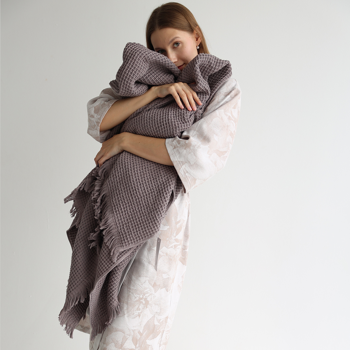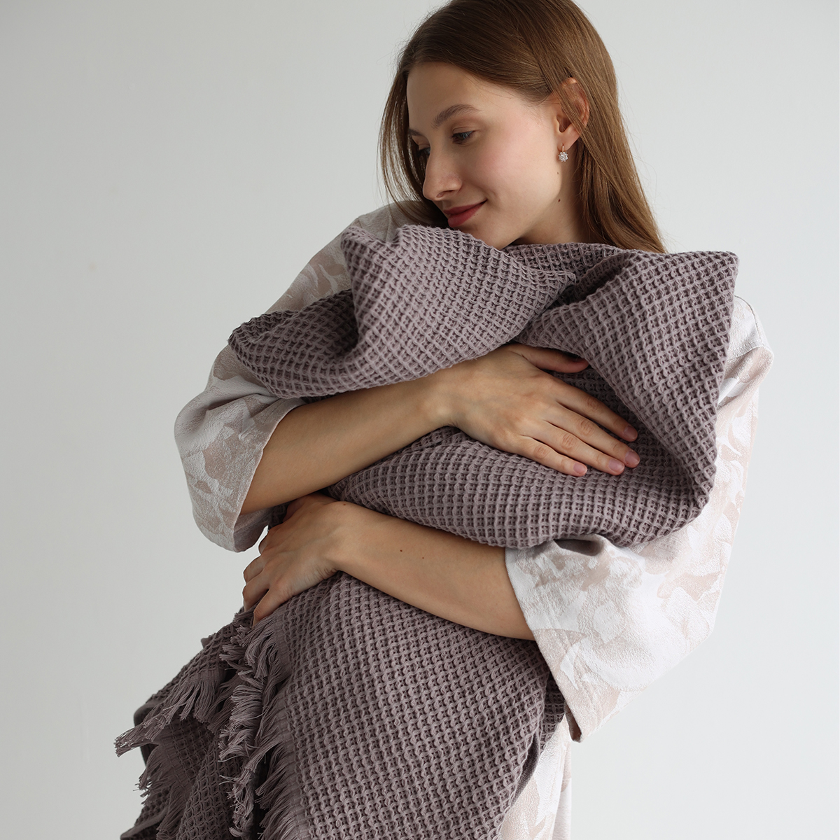 Высококачественная натуральная пряжа делает плед мягким и комфортным на ощупь. Оригинальная объемная фактура добавляет особую изысканность пледу.