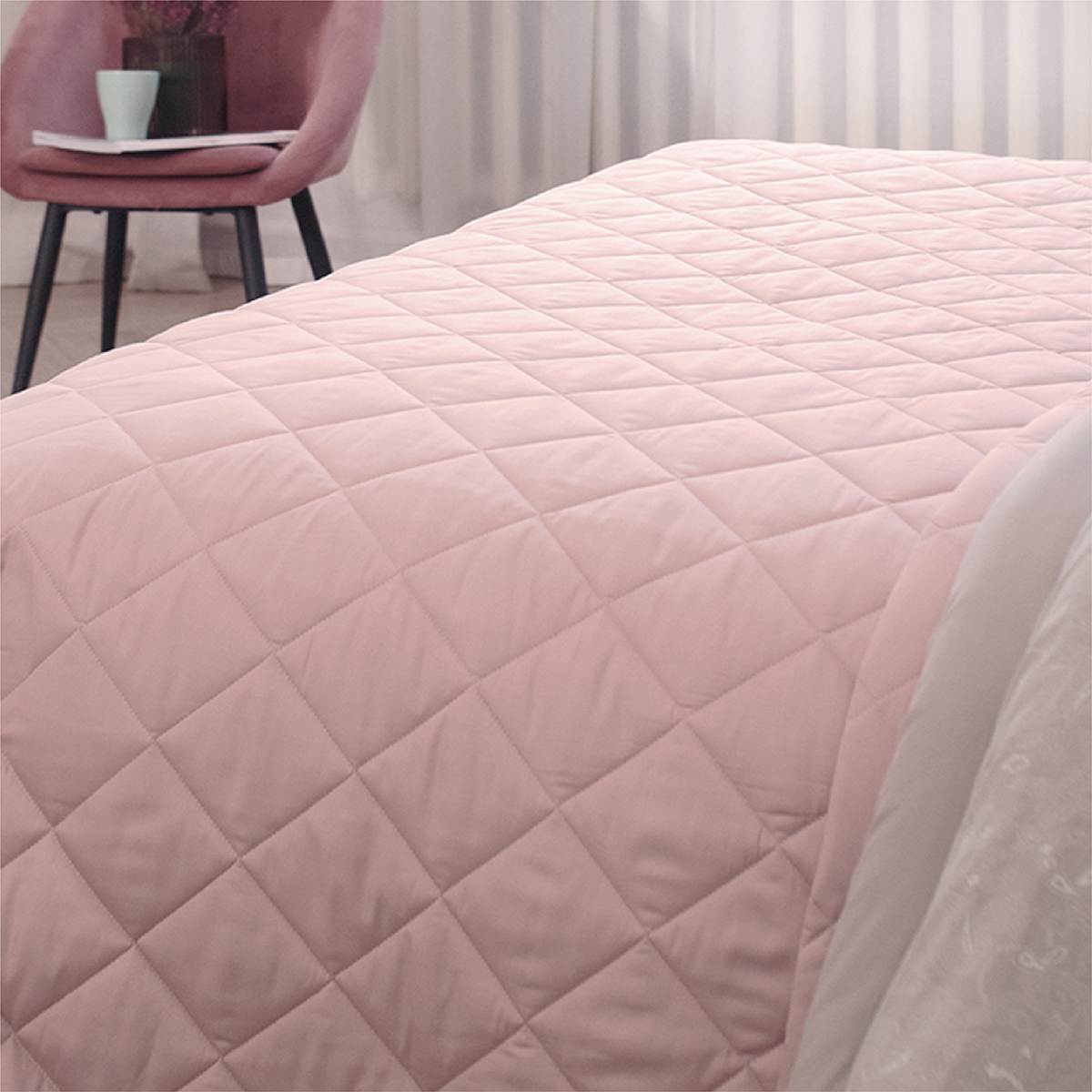 За покрывалом очень легко ухаживать, его можно стирать в стиральной машине. Покрывало стеганное практично: на хлопковой ткани не остается зацепок.