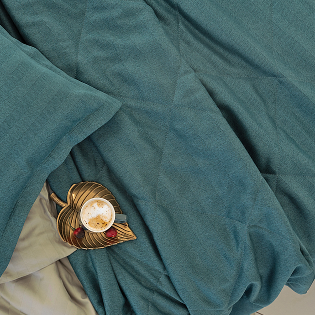 Подклад: микрофибра велюр, за счет своей фактуры он предотвращает скольжение покрывала на кровати.