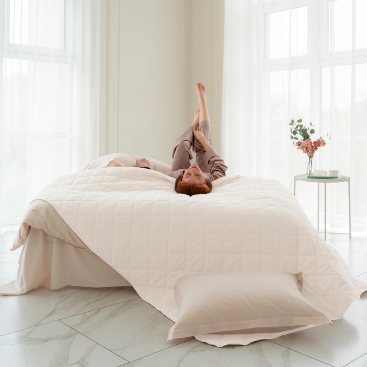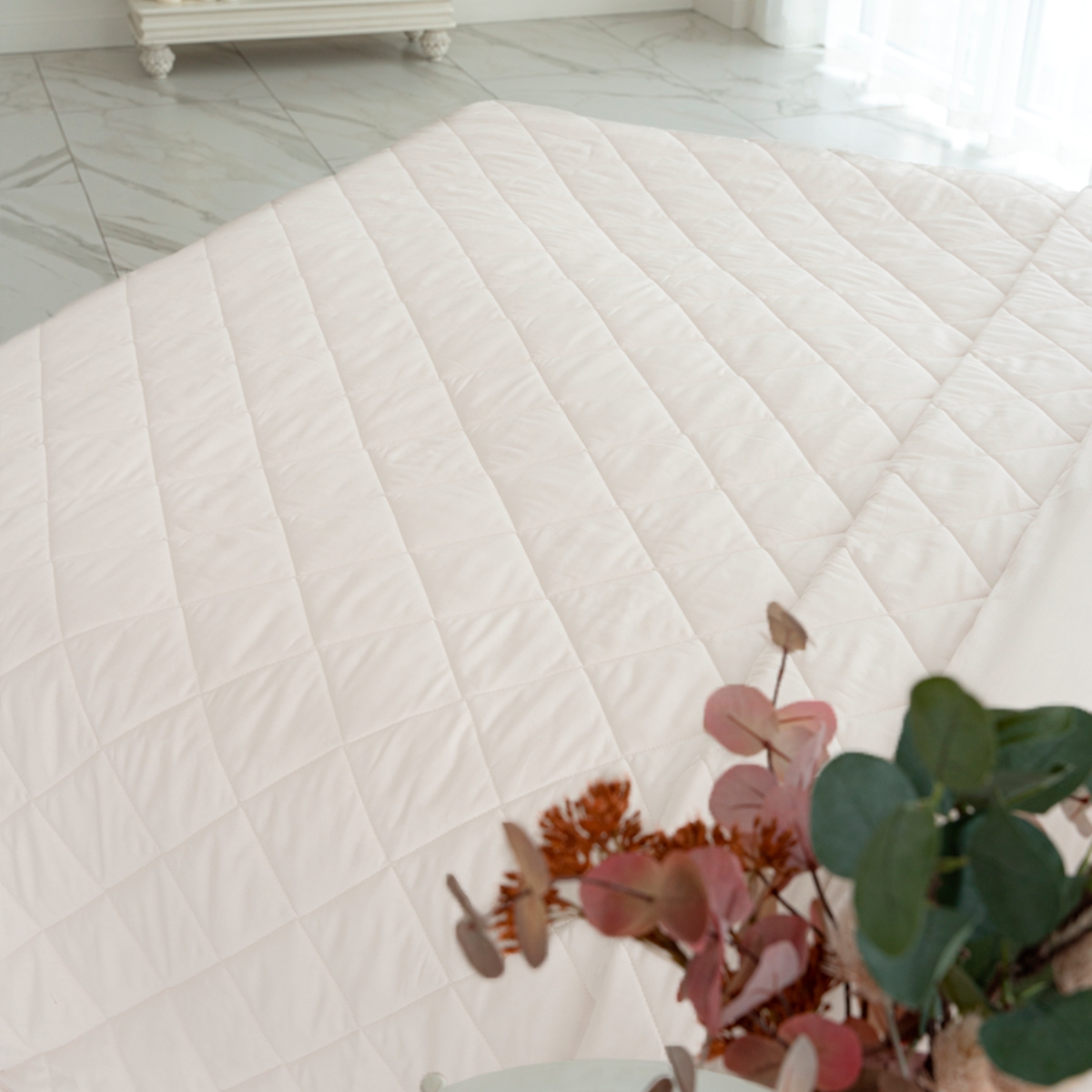 За покрывалом очень легко ухаживать, его можно стирать в стиральной машине. Покрывало стеганное практично: на хлопковой ткани не остается зацепок.