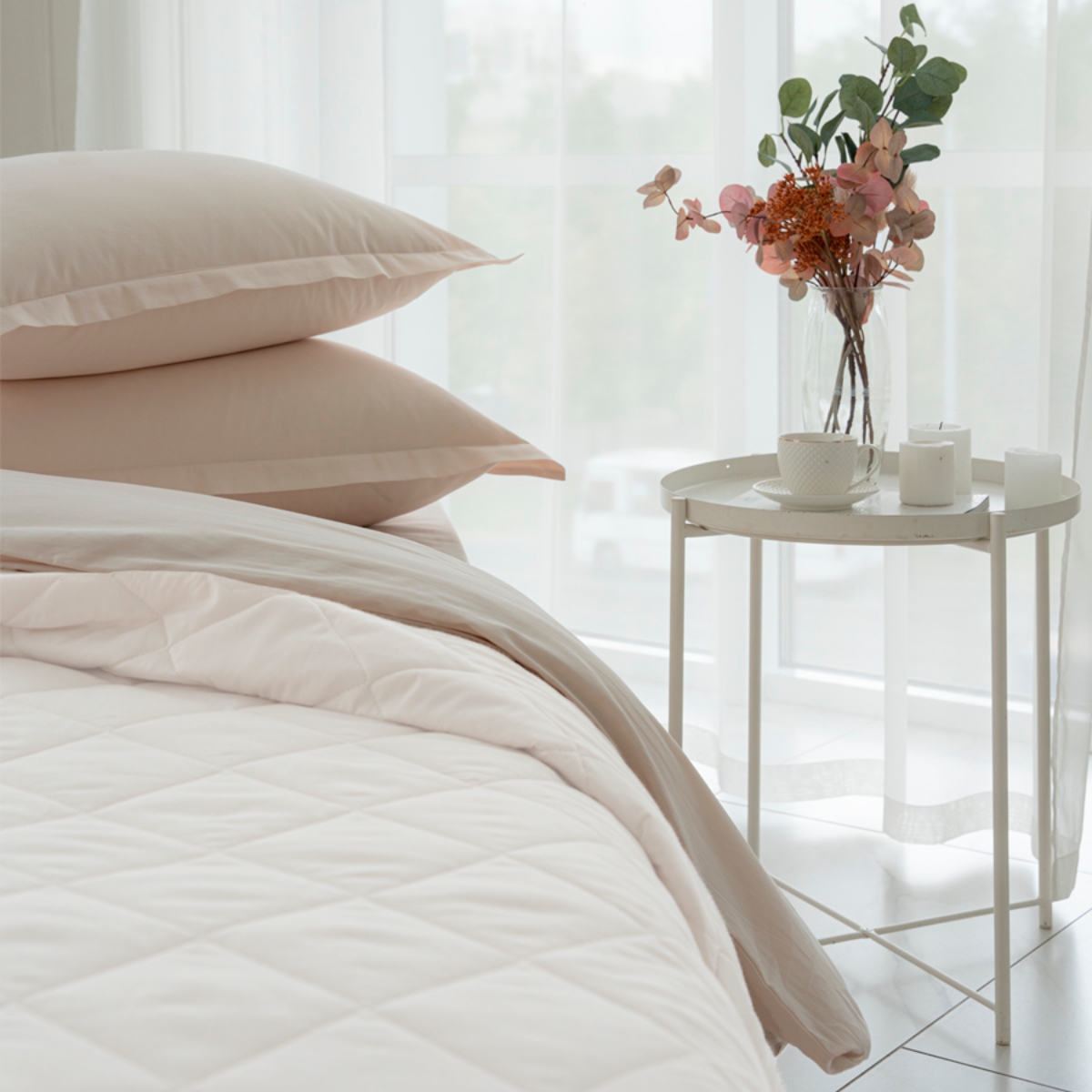 Удобное решение для оформления интерьера в едином стиле - покрывала выполнены в тех же расцветках и из той же ткани, что и однотонное постельное белье La Prima.