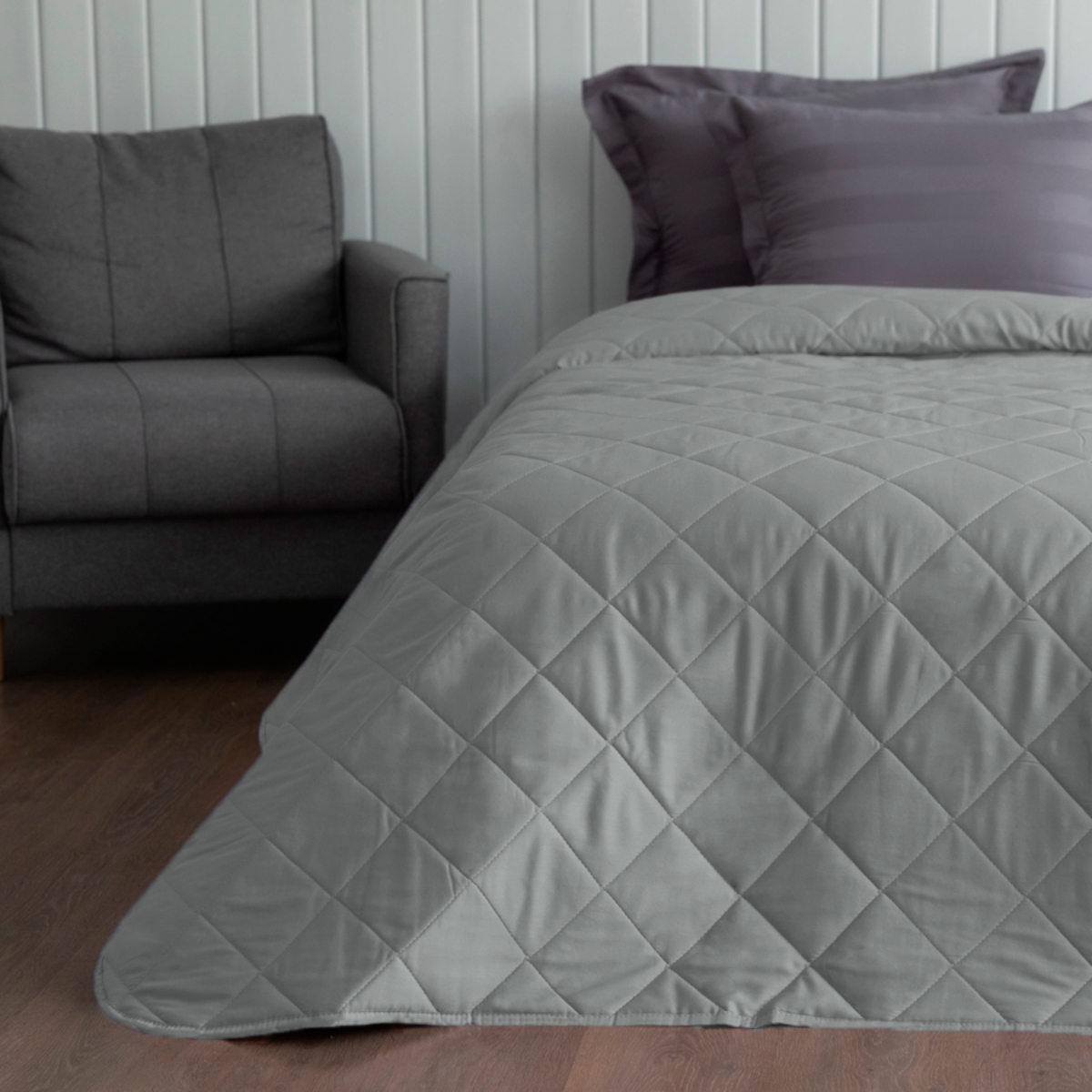 Нежное двухстороннее стеганое покрывало из 100% хлопка (сатин, плотность 205ТС) с гипоаллергенным 3D-наполнителем (100 г/м²) создано для тех, кто ценит: