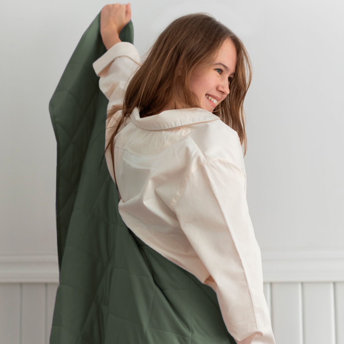 Нежное двухстороннее стеганое покрывало из 100% хлопка (сатин, плотность 205ТС) с гипоаллергенным 3D-наполнителем (100 г/м²) создано для тех, кто ценит: