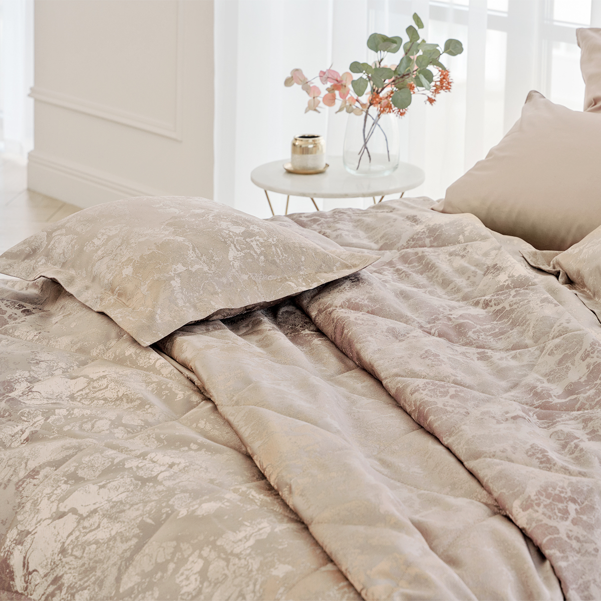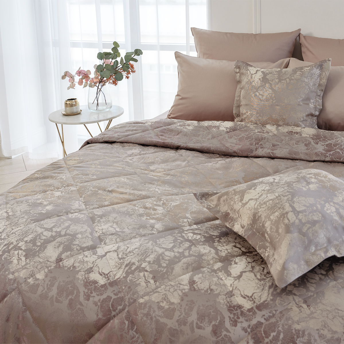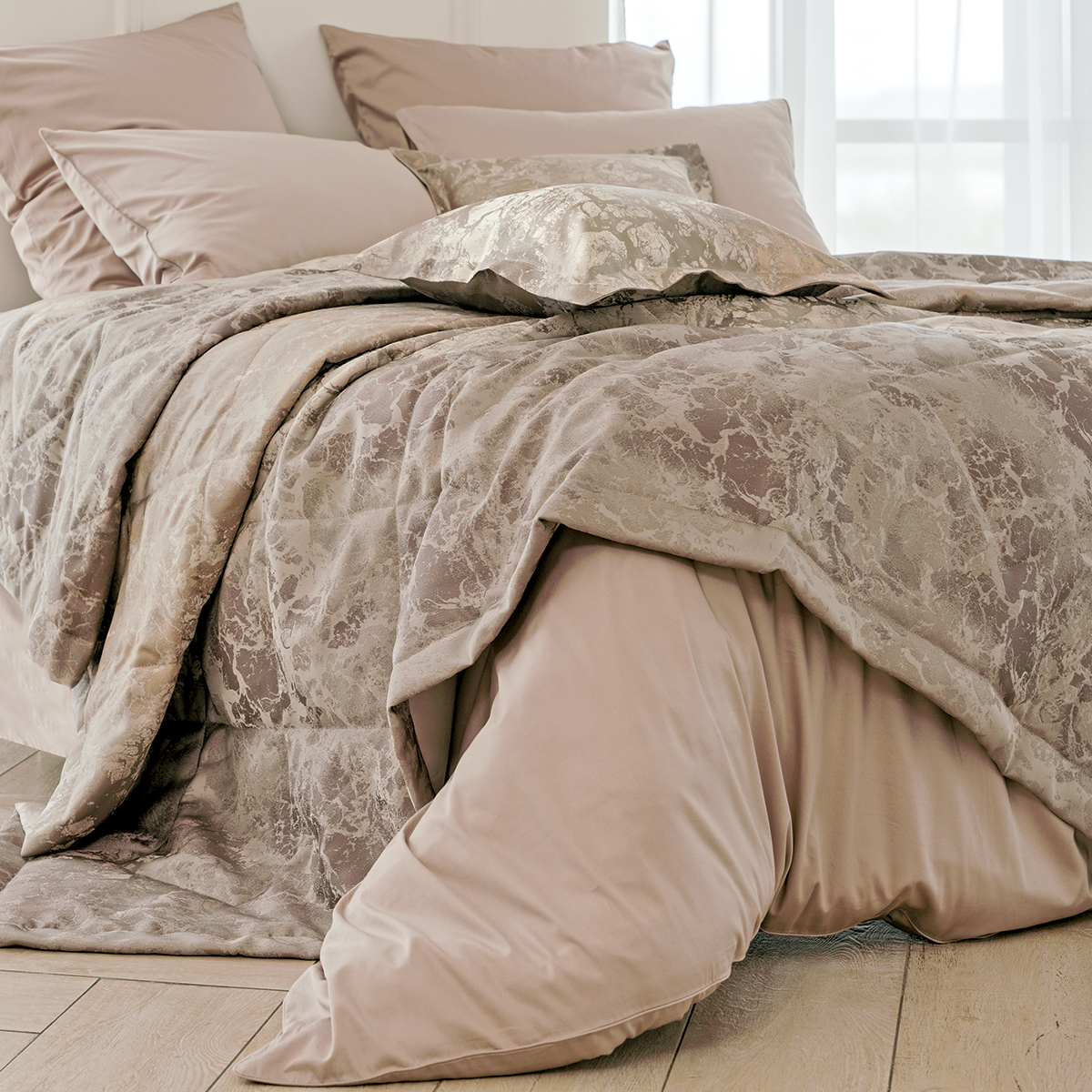 К покрывалу можно выбрать комплект штор из коллекции La Prima для создания неповторимой изюминки в вашем доме.