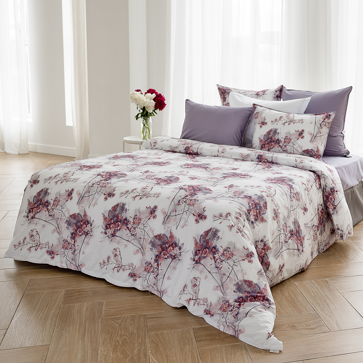 Изящный, будто воздушный, комплект воплощает в себе чарующую романтику, хрупкую красоту и элегантность. Нежное сочетание розово-голубых оттенков, стильно дополненное изящным и легким флористическим орнаментом, словно погружает нас в мир сказочных грез. Неповторимый стиль и гармония вашего интерьера.