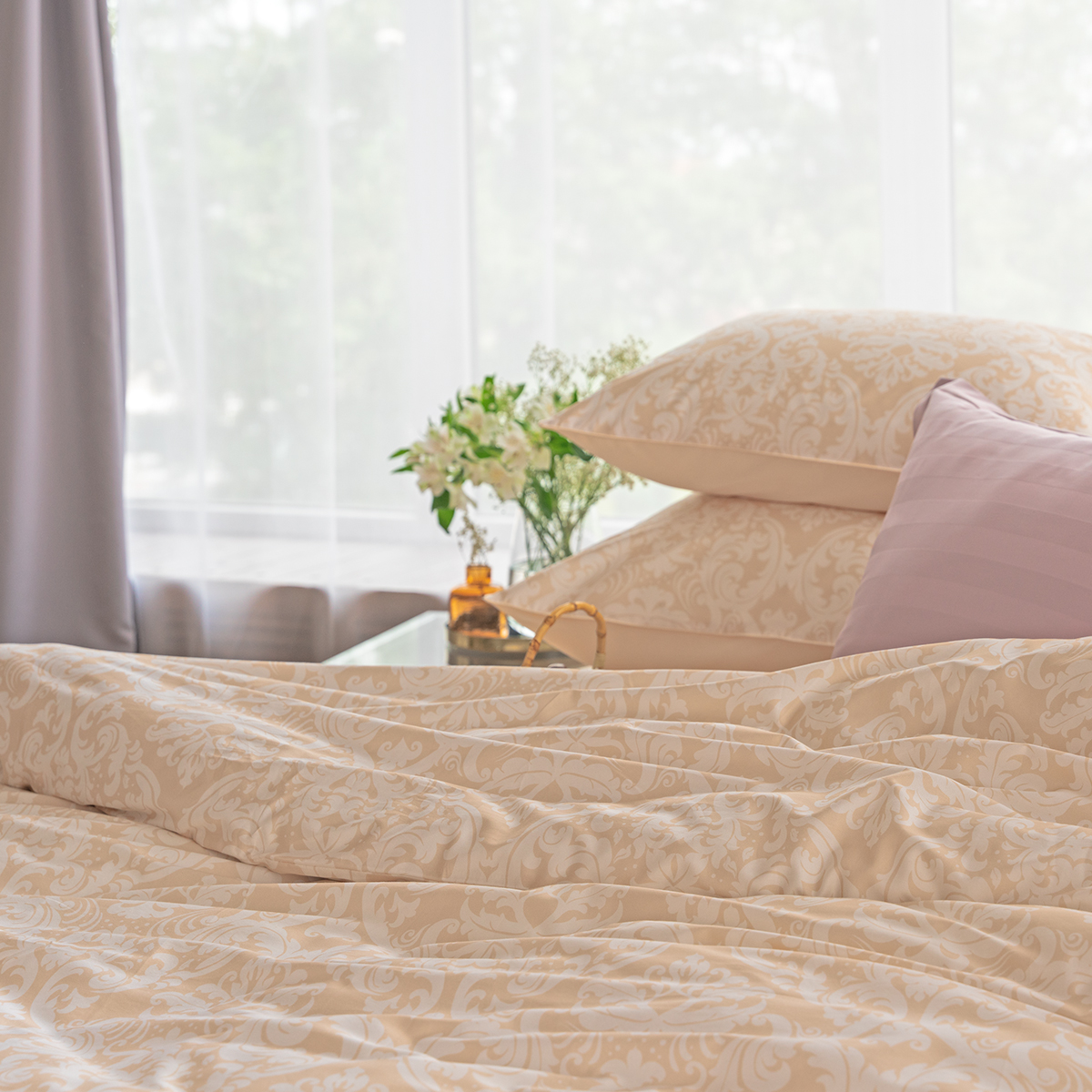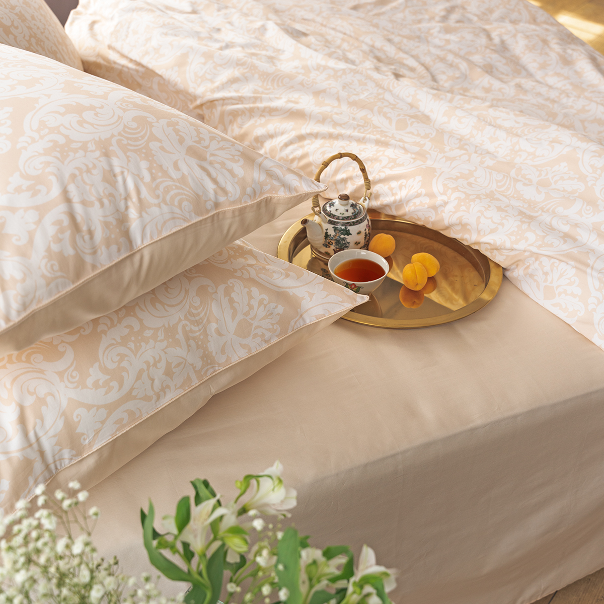 Нет ничего прекраснее кровати, которая так и манит в свои нежные объятия! Наши исключительно мягкие комплекты из мако-сатина действуют именно так — они дышащие, гладкие, прочные и словно созданы для аристократической спальни.
