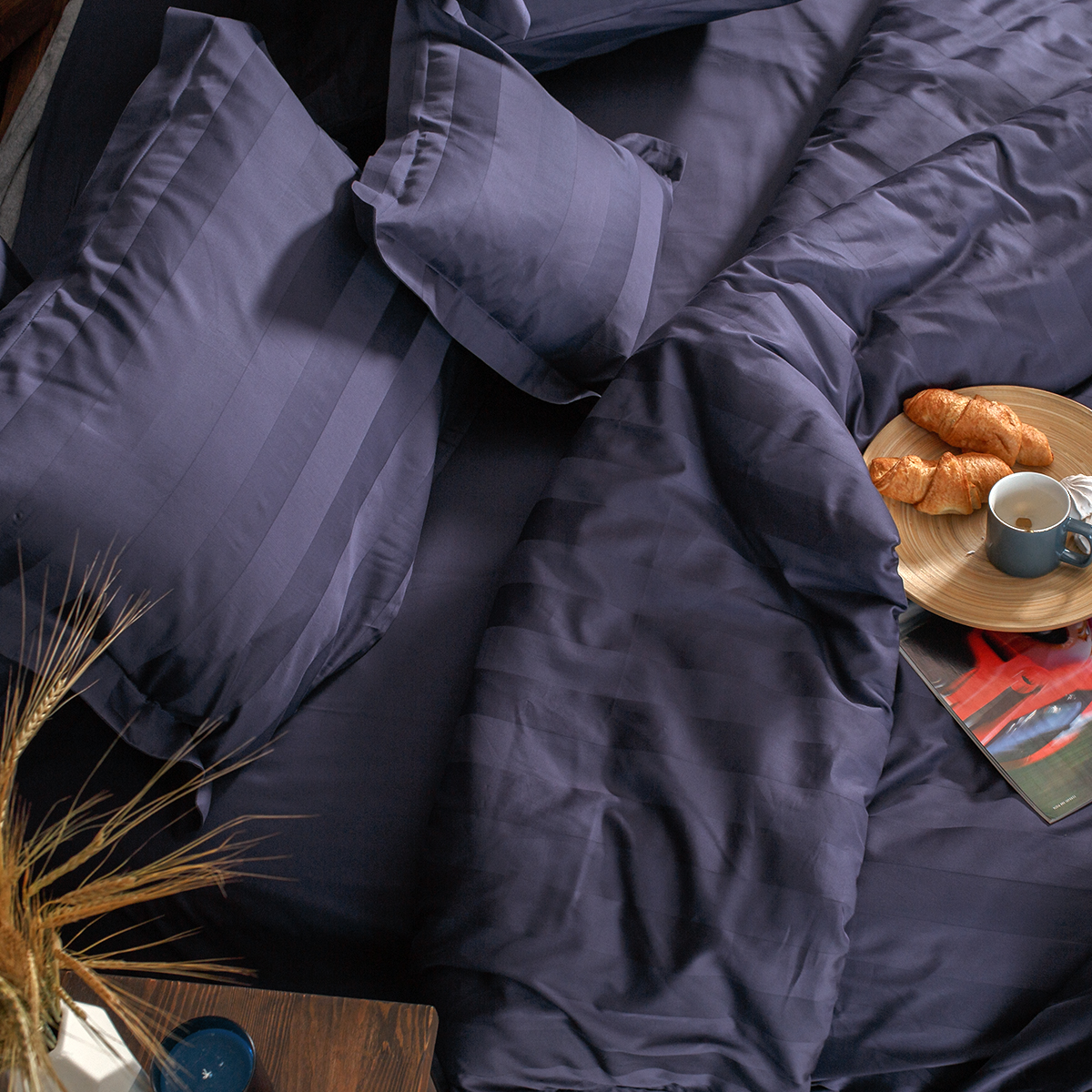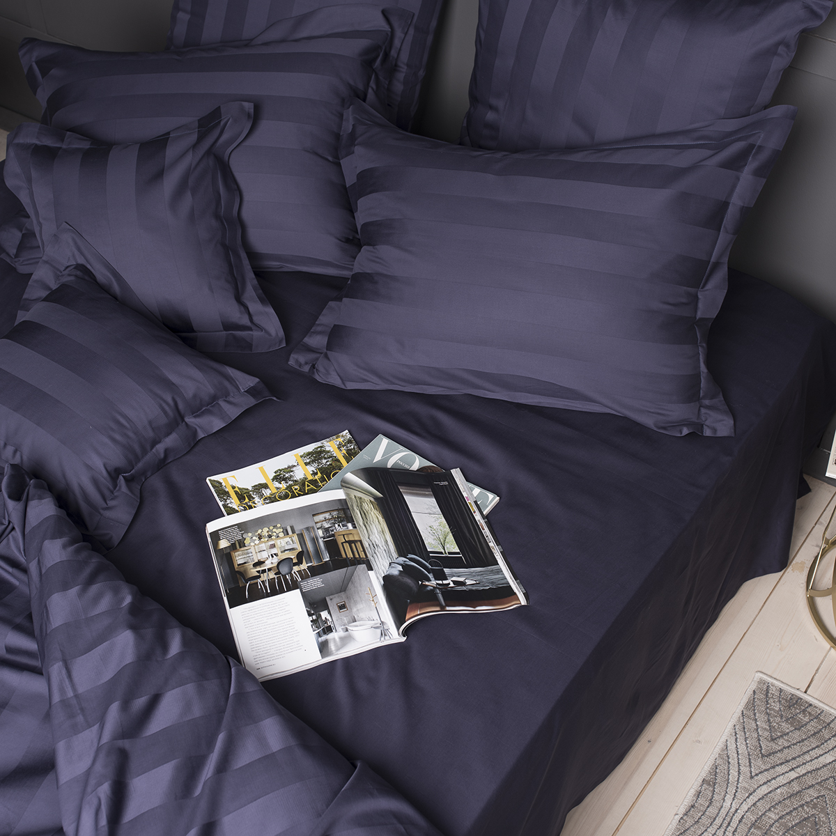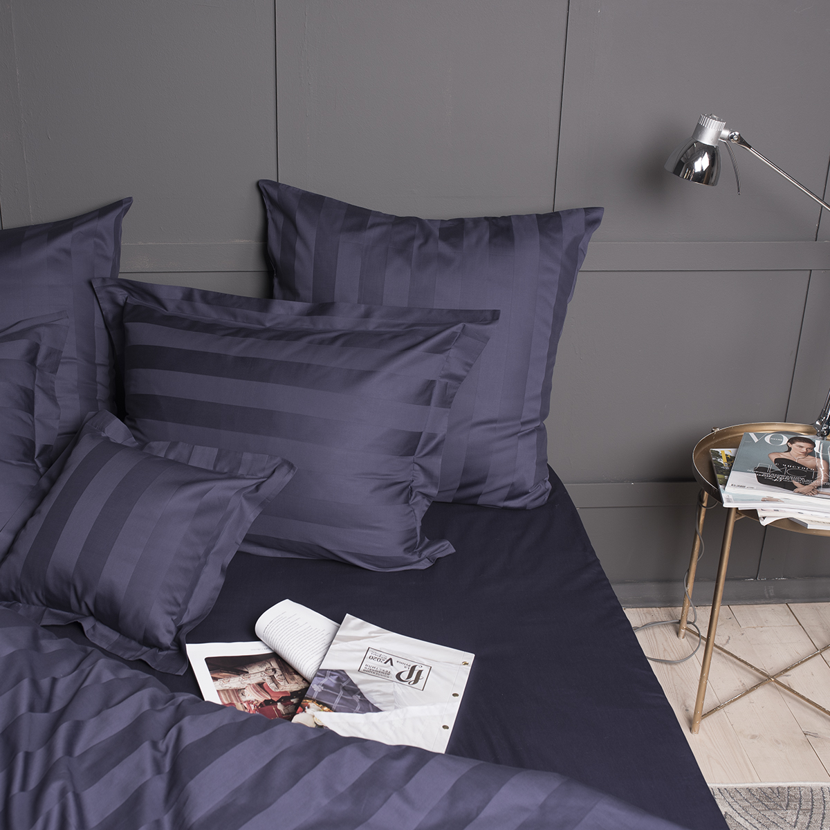 Однотонный комплект постельного белья - роскошный 100% египетский хлопок высшего сорта, с жаккардовым рисунком в виде полос 5х5см. Используется более тонкая 60-я нить. За счет специальной скрутки нити, ткань получается очень мягкая и приятная на ощупь. Имеет благородный блеск.