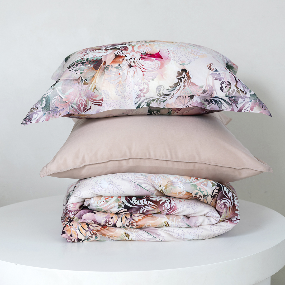 • 4 наволочки в комплекте: 50х70см - декоративные ушки 4 см с двойной отделочной отсрочкой по трем сторонам наволочки. «Невидимая» молния по широкой стороне наволочки. 70х70см - двойная отделочная отсрочка по 3м сторонам наволочки. «Невидимая» молния по нижнему краю наволочки.