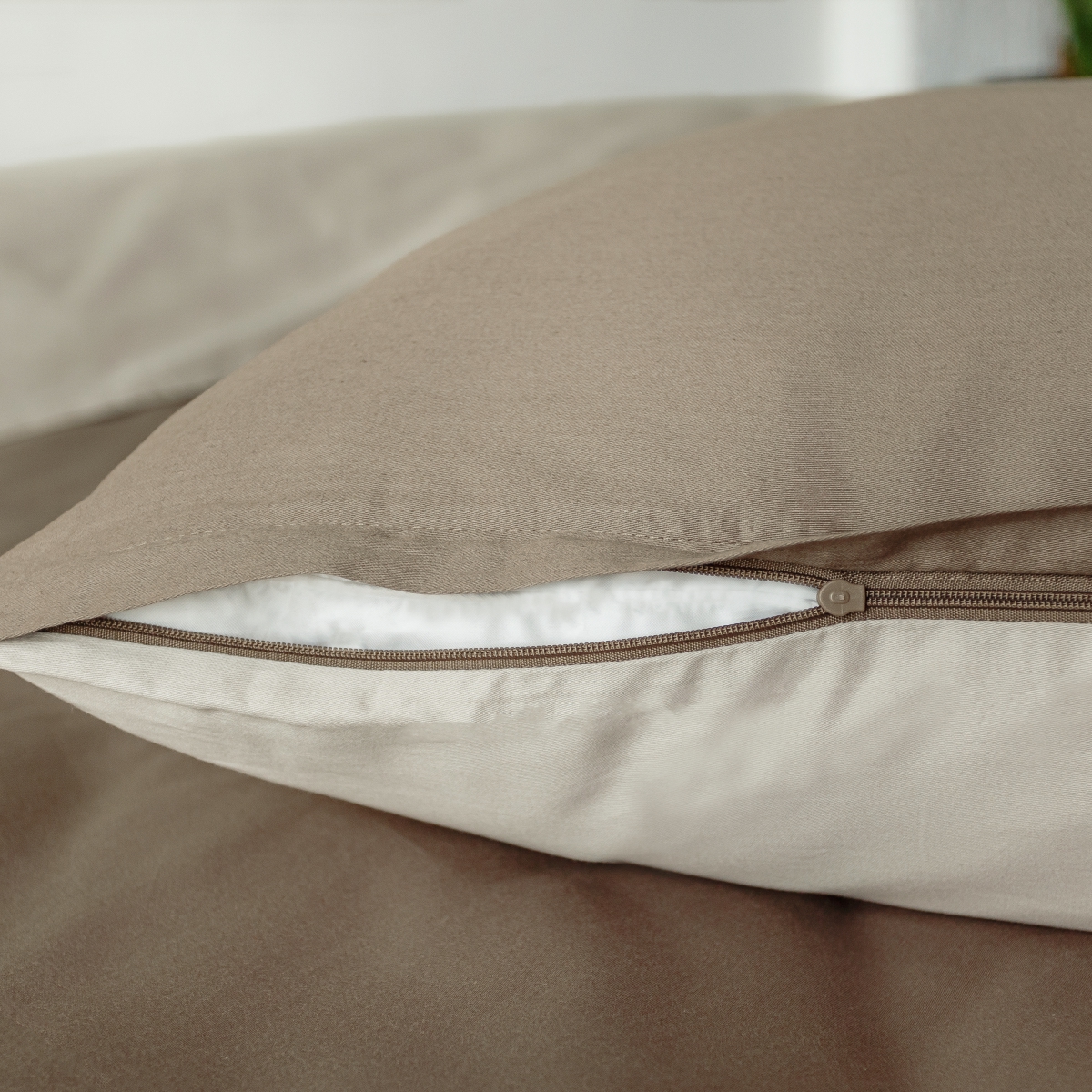 Детали: Двусторонняя наволочка размером 50х70см на молнии. Двусторонний пододеяльник на молнии