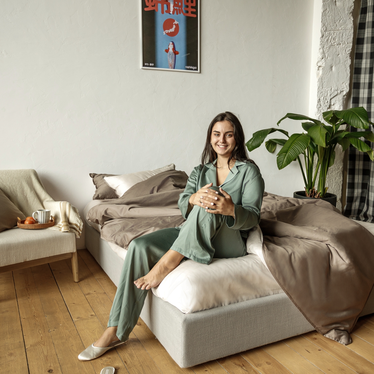 Постельное белье прекрасно пропускает воздух, поддерживает комфортную температуру тела во сне. Безопасно для использования аллергиками - абсолютно гипоаллергенно.