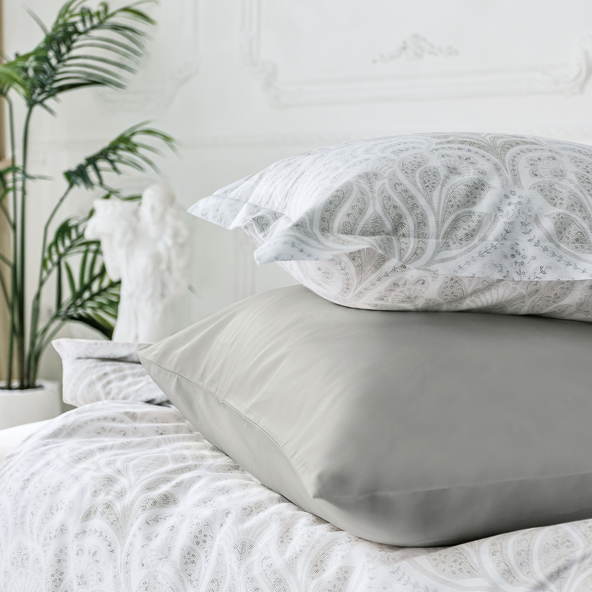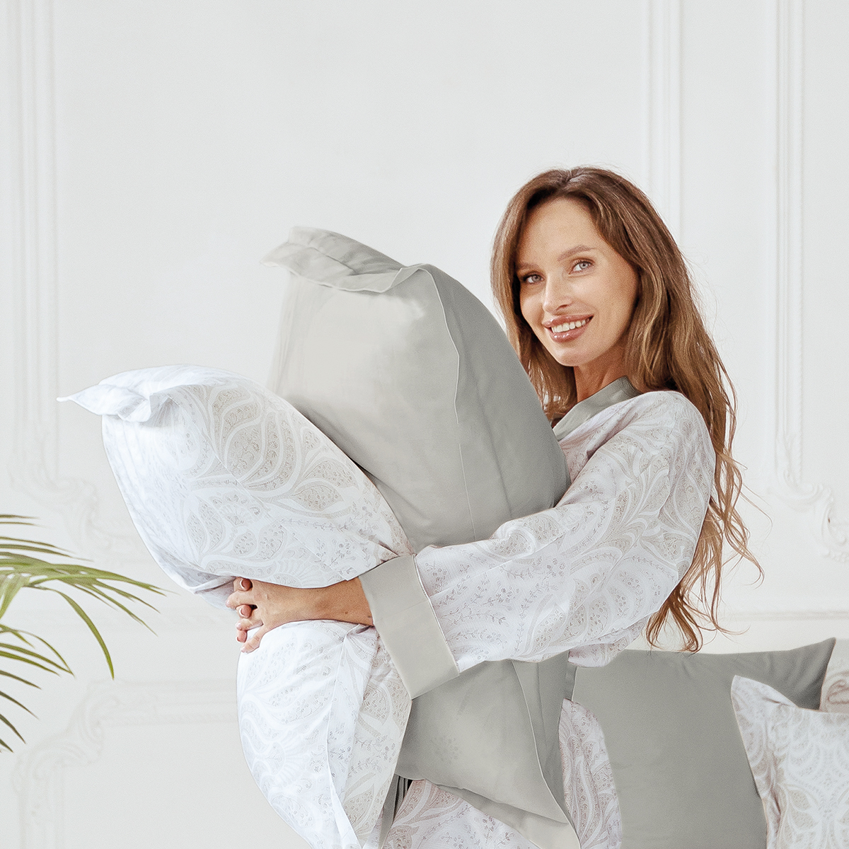 Тонкая 60-я нить и плотность ткани в 300 ТС делают мако-сатин невероятно мягким и приятным на ощупь. Специальная скрутка нити обеспечивает нежность, которая сохраняется даже после множества стирок. Это идеальный выбор для самой чувствительной кожи – ткань пропускает воздух, поддерживая комфортную температуру тела в любое время года, и является гипоаллергенной.