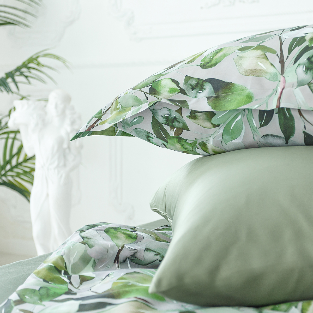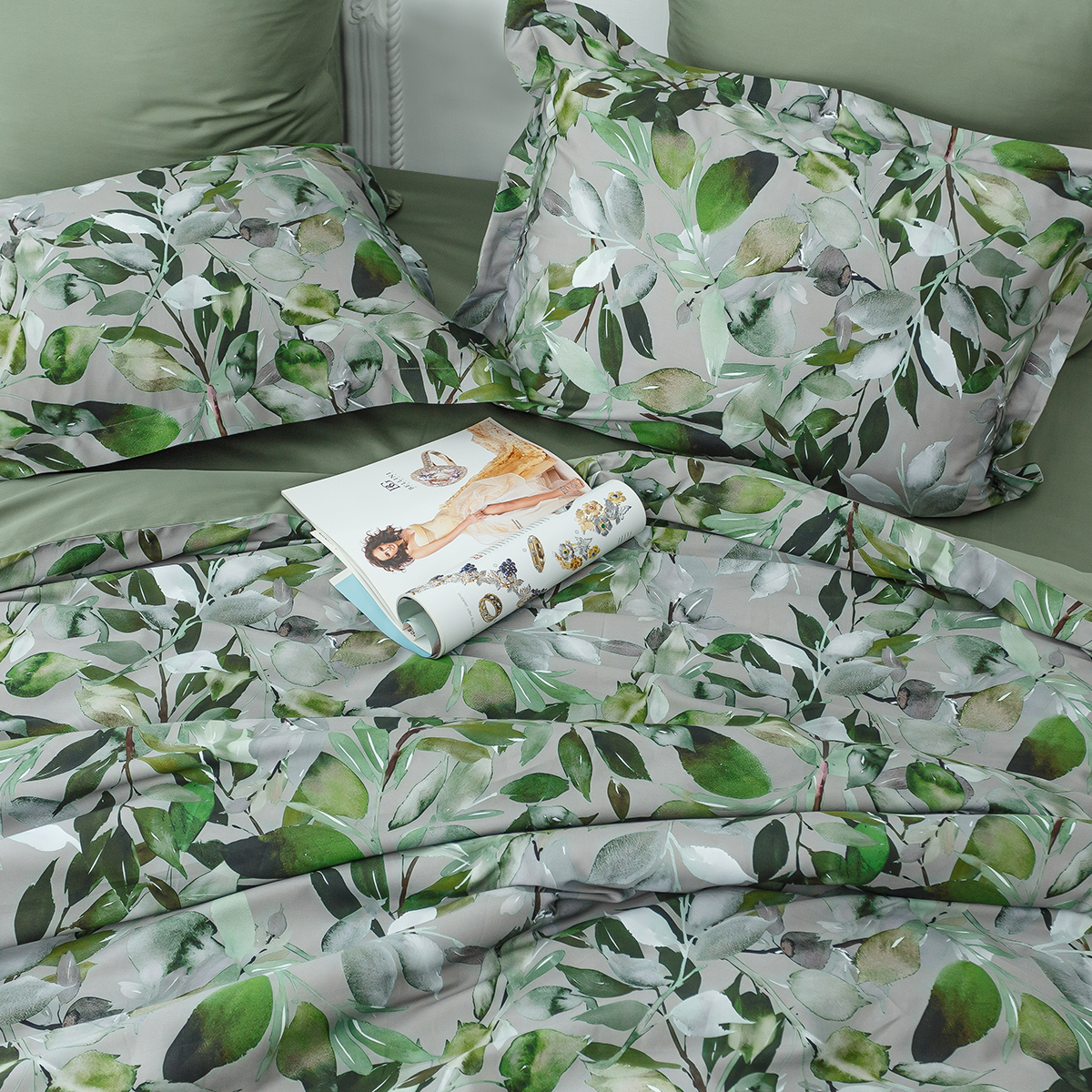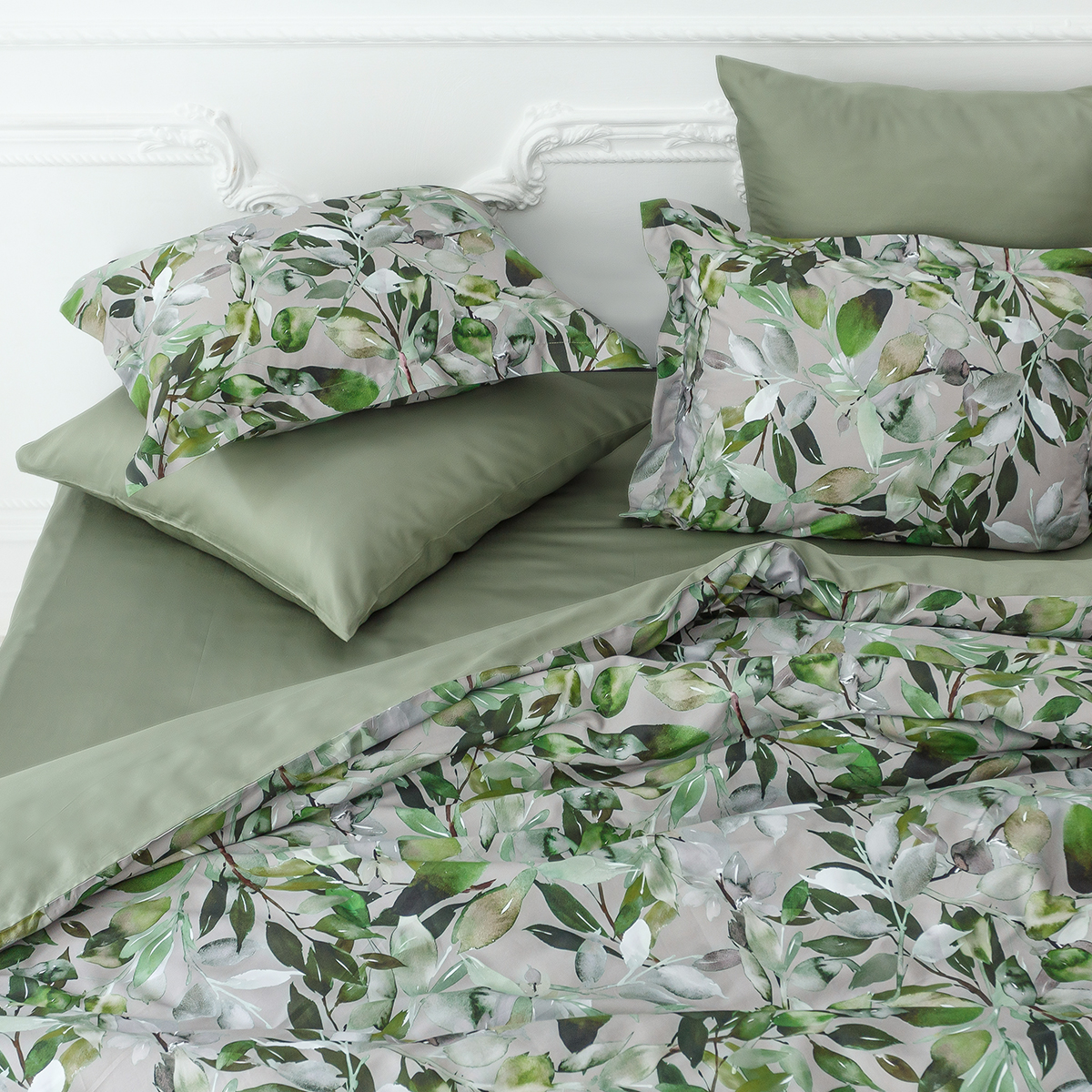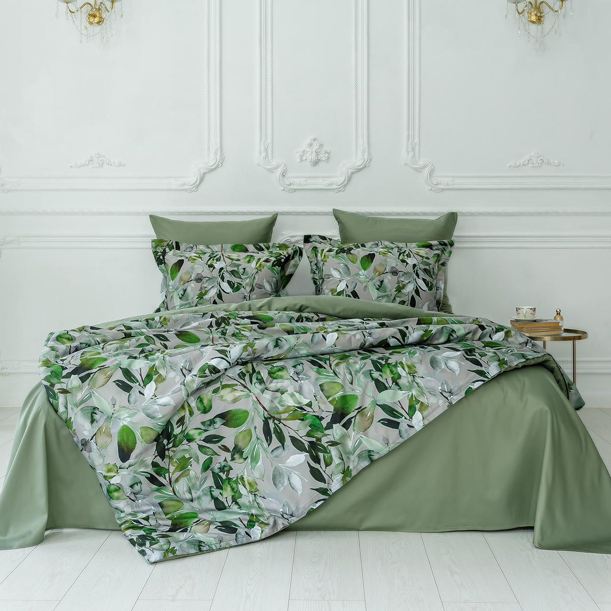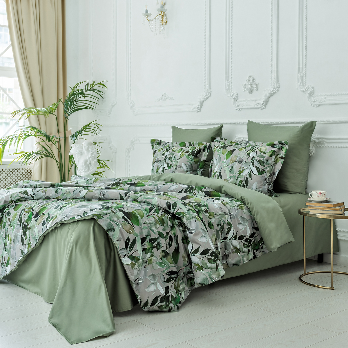 «Мадлен» - ярким и свежий растительный узор привнесет в спальню ощущение природы и легкости. Зеленые листья, выполненные в акварельной технике, создают эффект живого сада, наполняя пространство свежестью и гармонией. Этот комплект идеально подходит для тех, кто хочет окружить себя природной красотой и ощущением расслабления.
