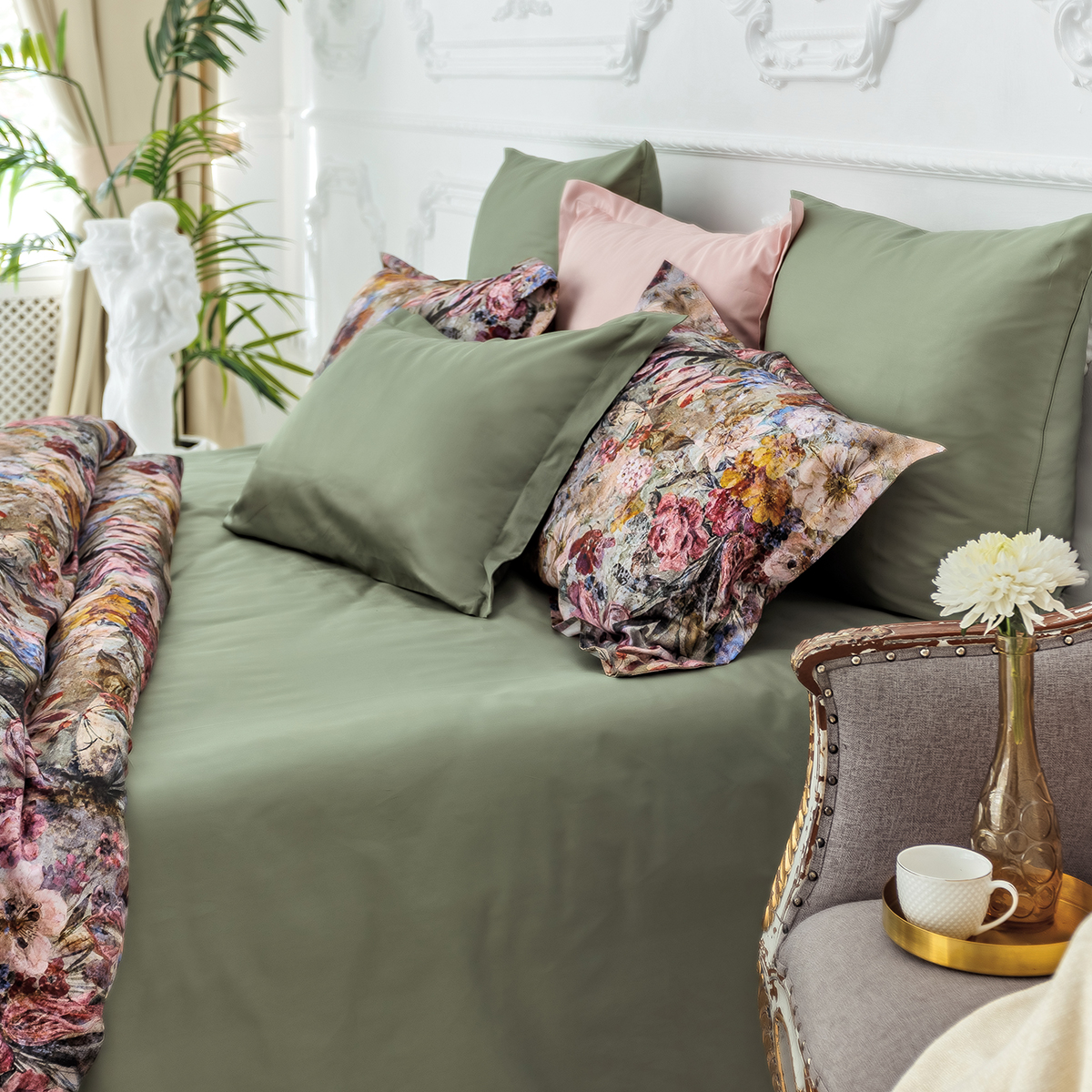 Тонкая 60-я нить и плотность ткани в 300 ТС делают мако-сатин невероятно мягким и приятным на ощупь. Специальная скрутка нити обеспечивает нежность, которая сохраняется даже после множества стирок. Это идеальный выбор для самой чувствительной кожи – ткань пропускает воздух, поддерживая комфортную температуру тела в любое время года, и является гипоаллергенной.