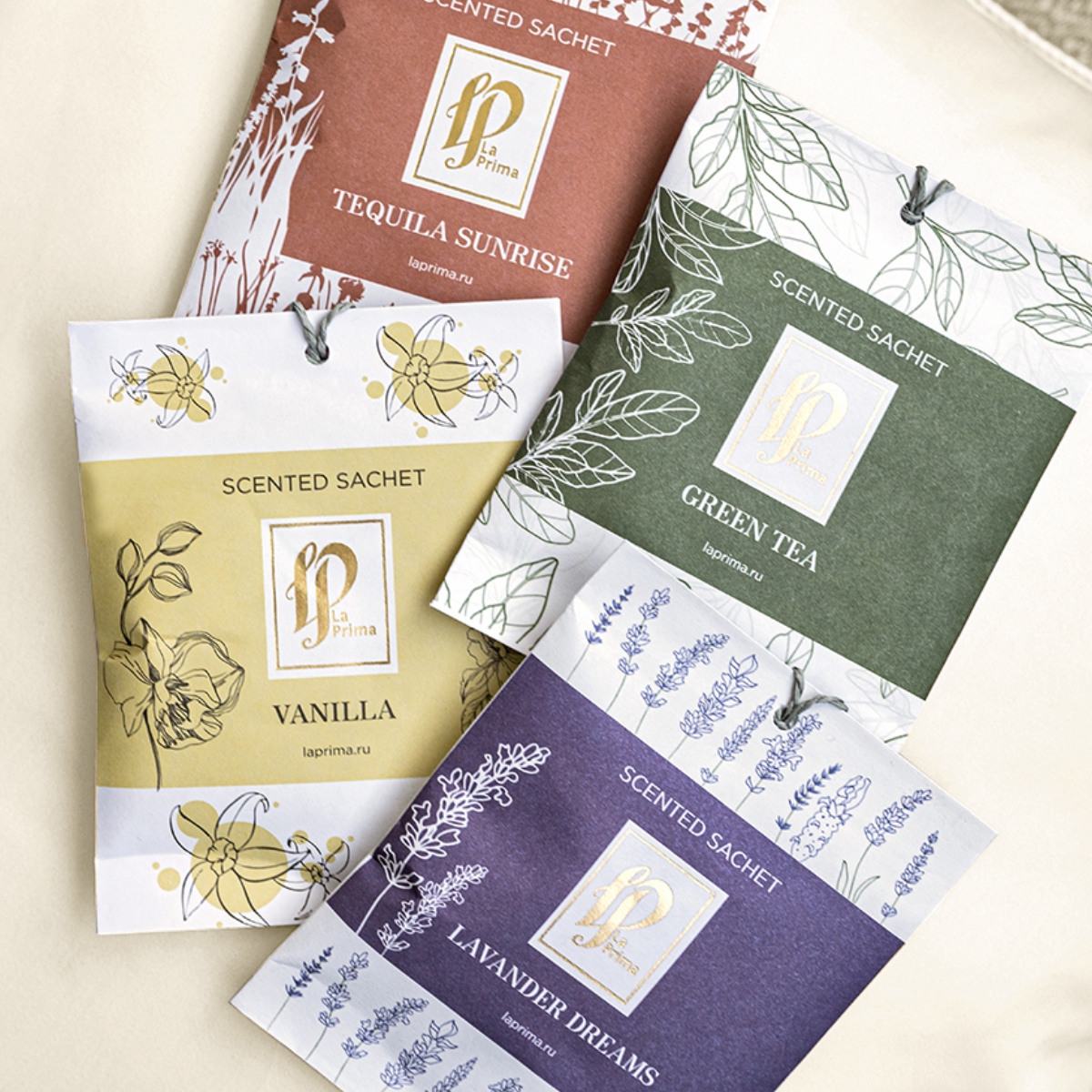 В каждой коробке вы найдете комплимент от нас — ароматическое саше, которое удобно повесить в шкаф или положить в ящик с постельным бельем.