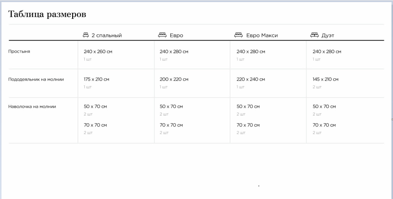 Детали: Наволочки на молнии с декоративными ушками по 3-м сторонам и кантом. Пододеяльник на молнии