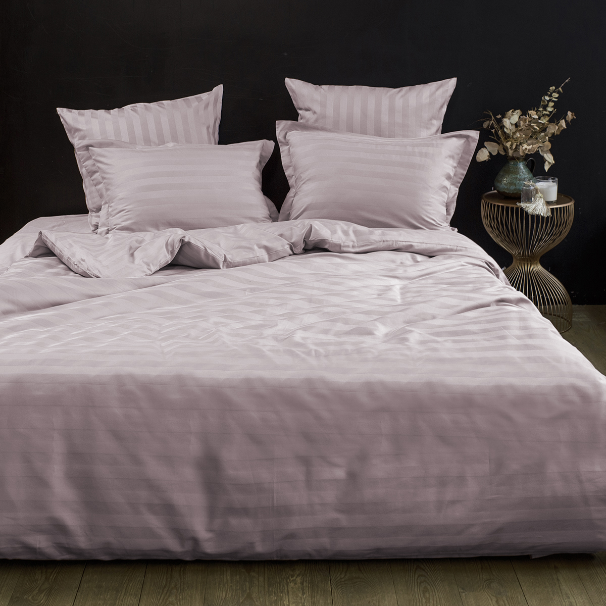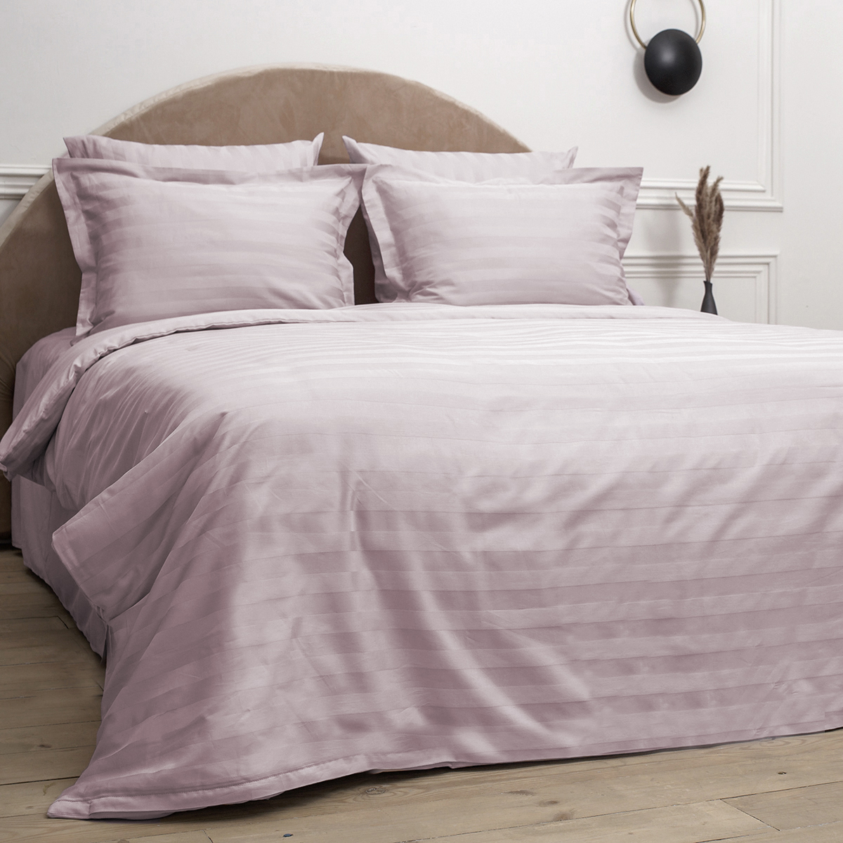 Однотонный стильный пододеяльник произведен из ткани страйп-сатин – 100% хлопок с жаккардовым рисунком в виде полос 3х3
