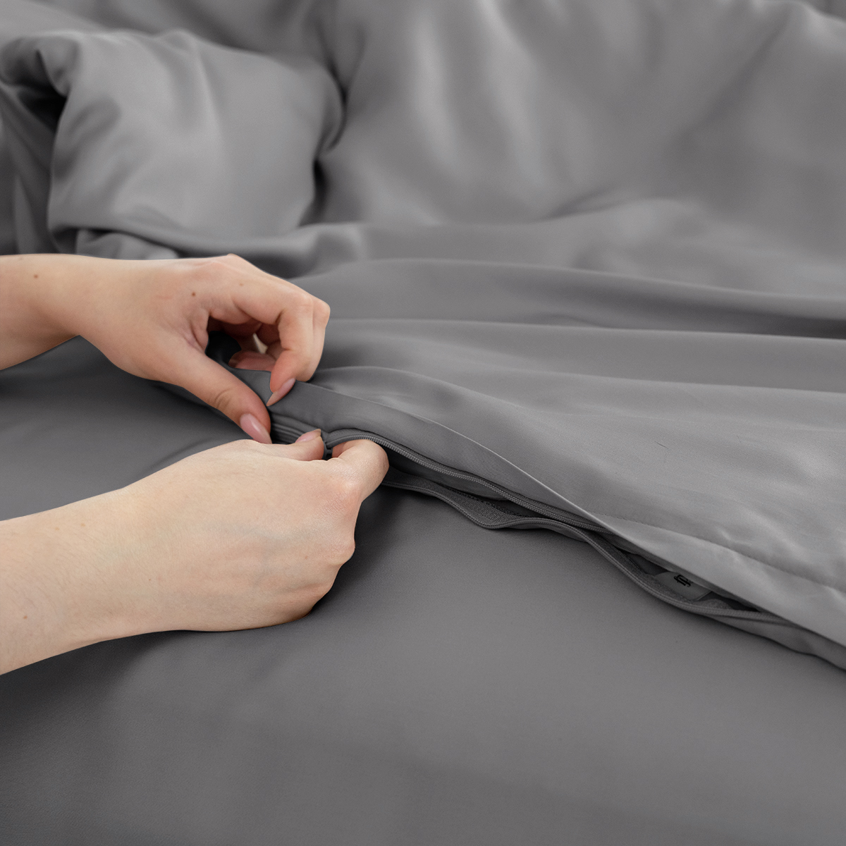 Однотонный стильный пододеяльник изготовлена из роскошного 100% эвкалиптового волокна Tencel. 100% безопасность для человека и экологии – при производстве эвкалиптового волокна не используются вредные химические компоненты, а волокна Tencel - полностью биоразлагаемые. Материал прекрасно «дышит», т.е. пропускает воздух, обеспечивает приятную прохладу в жаркое время года.