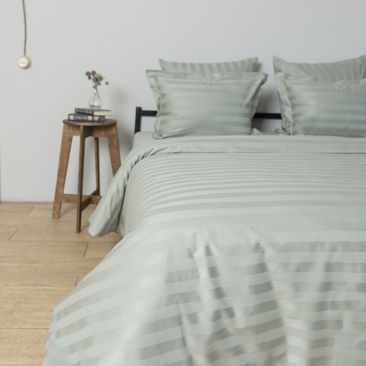 Однотонный стильный пододеяльник произведен из ткани страйп-сатин – 100% хлопок с жаккардовым рисунком в виде полос 3х3
