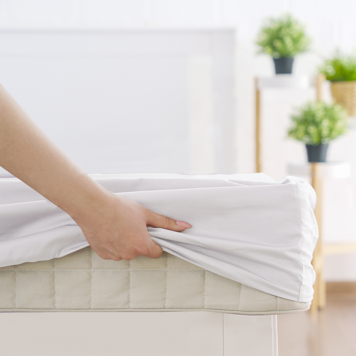 Детали: тонкая резинка по всему периметру простыни для плотной фиксации на матрасе.