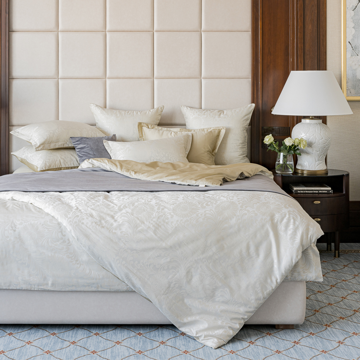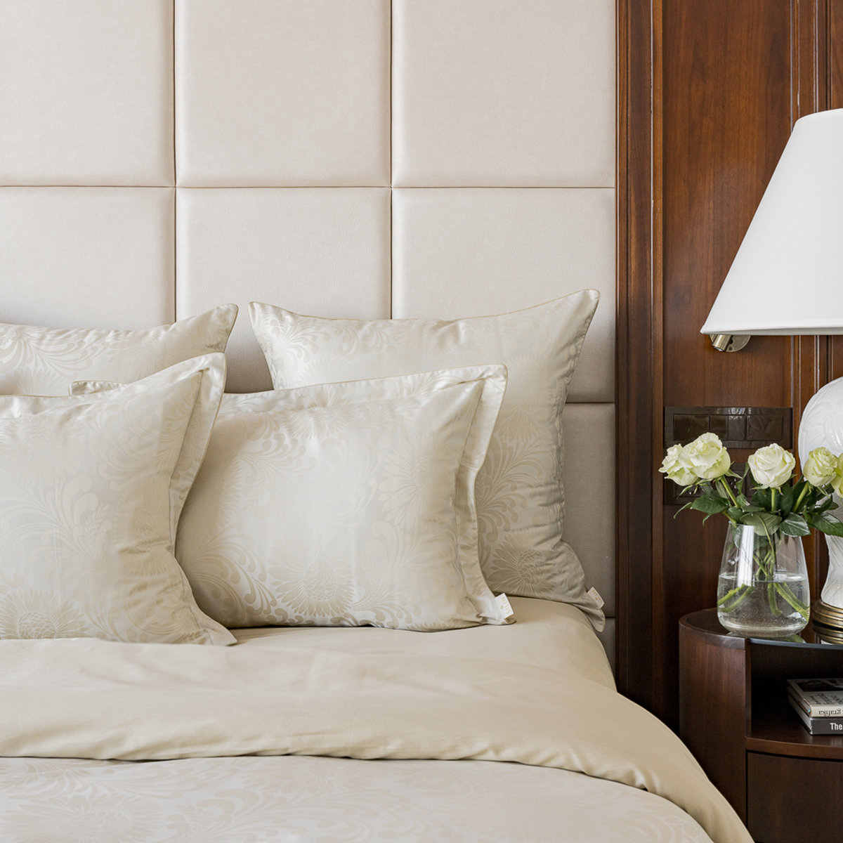 - Лицевая сторона наволочек и пододеяльника выполнена из жаккардовой ткани, оборотная из премиального длинноволокнистого хлопка сорта Пима