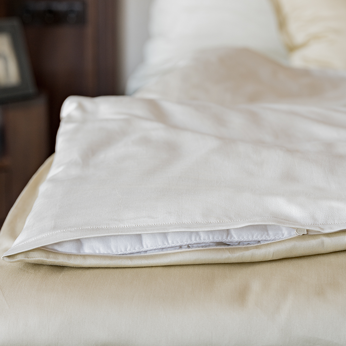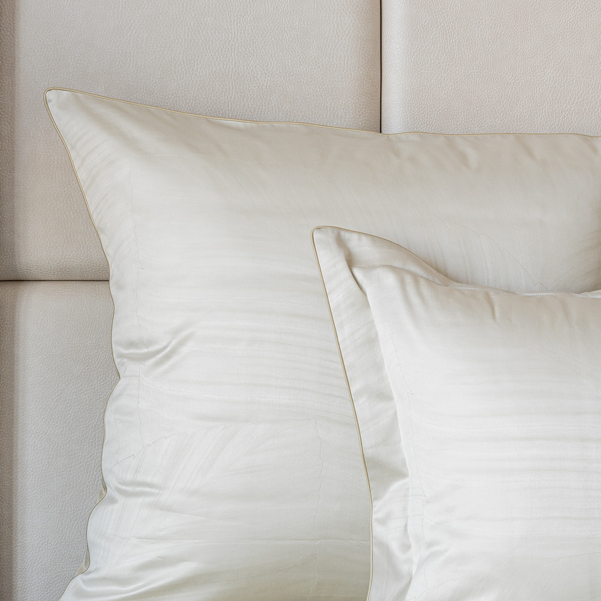 - Лицевая сторона наволочек и пододеяльника выполнена из жаккардовой ткани, оборотная из премиального длинноволокнистого хлопка сорта Пима
