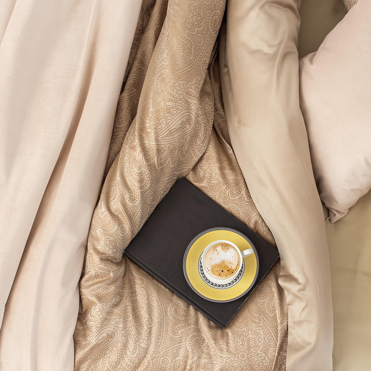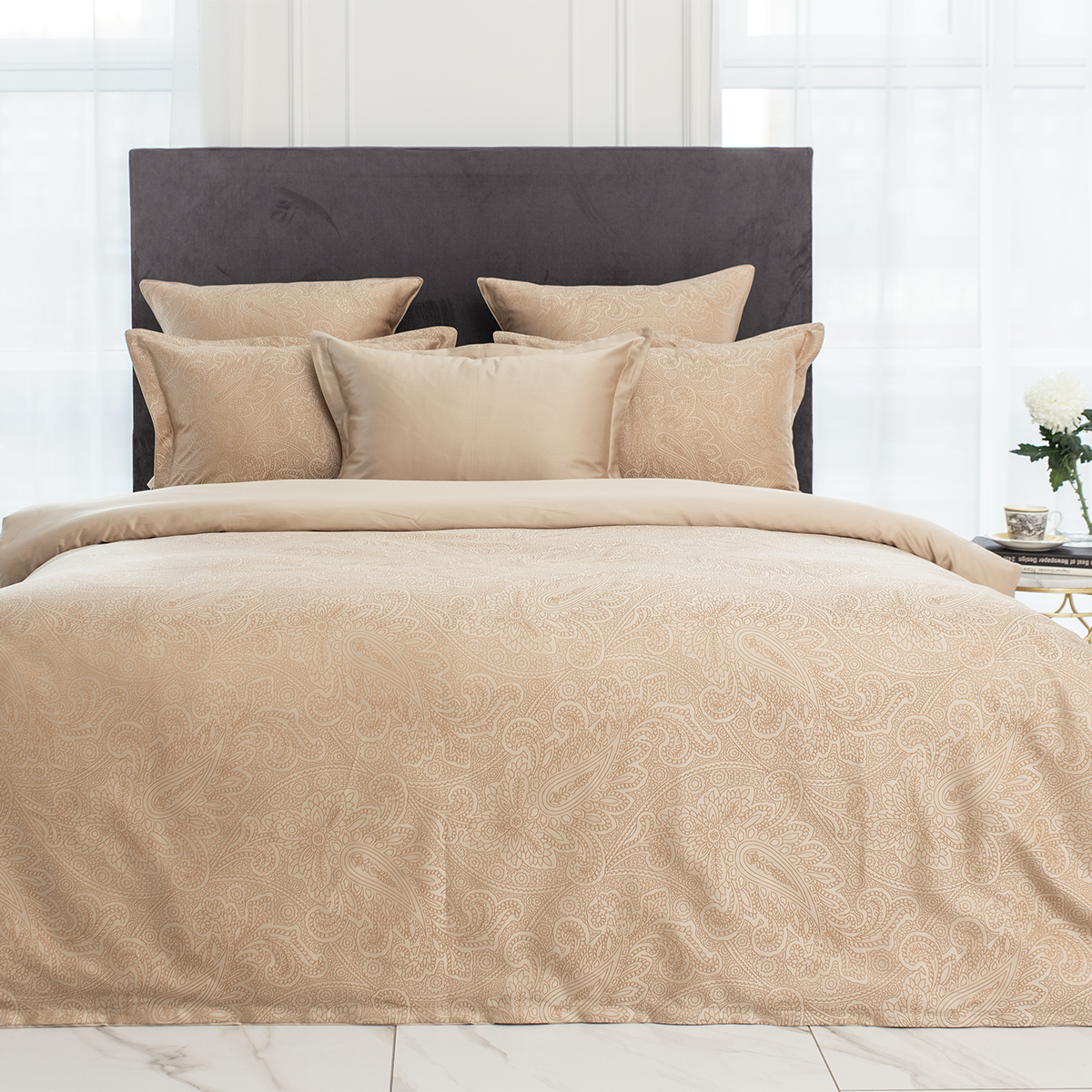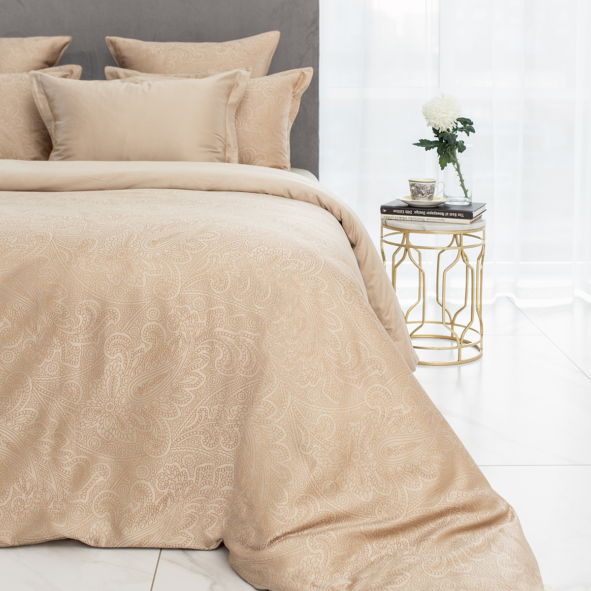 Внешне жаккардовое постельное белье выглядит очень дорого и изысканно. Благодаря тому, что нити в процессе производства перекручиваются, жаккардовая ткань очень плотная, прочная и устойчивая к деформированию, а рисунок и цвет не тускнеют в процессе эксплуатации.