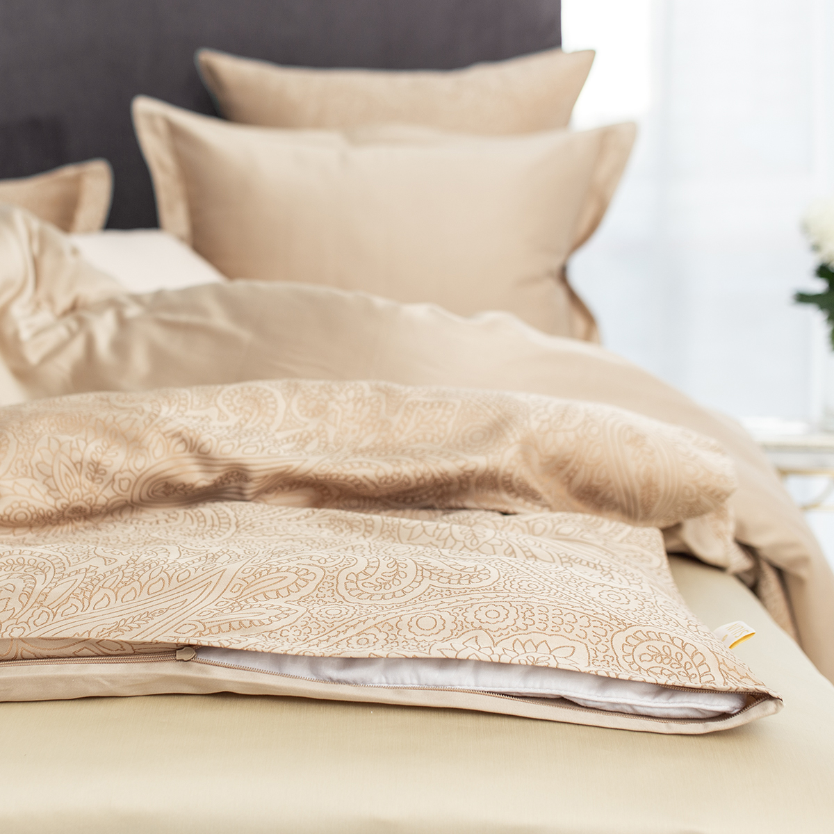 - Лицевая сторона наволочек и пододеяльника выполнена из жаккардовой ткани, оборотная из премиального длинноволокнистого хлопка сорта Пима
