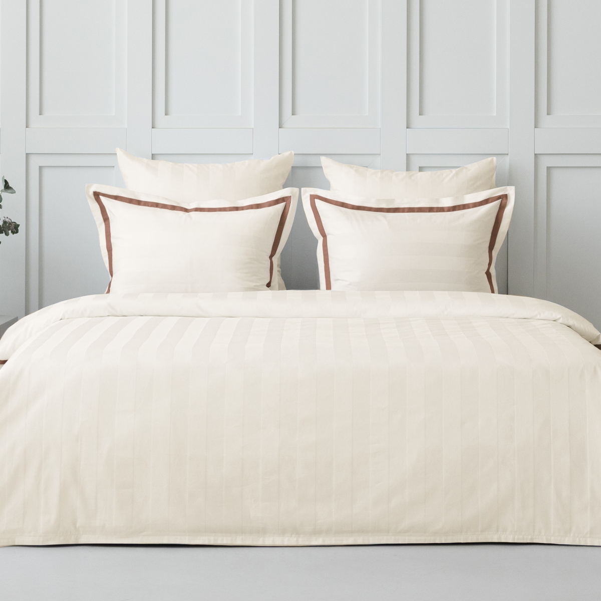 Ткани с сатиновым плетением нитей отличаются элегантностью, мягкостью и характерным шелковистым блеском. Это плетение сложнее, чем полотняное, и предполагает, что поперечные нити выходят на лицевую сторону, перекрывая несколько продольных нитей. Сатин является идеальным выбором для создания красивого постельного белья, которое приятно на ощупь. Эта ткань напоминает шелк, но при этом более доступна по цене и менее капризна в уходе.